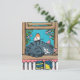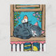 Themed vykort för gullig katt som presenterar en illustration av en grå tabby katt som sovar på en fönsterbräda med enspets fjäril på dess baksida. Perfekt som ska överföras till kattälskare eller som ska tillfogas till din samling. Illustration© Lisa Marie Robinson. All reserverad rättigheter.