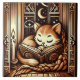 Sovande Art Deco Stil Katt Med En Bok Kakelplatta