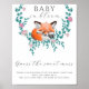 Baby i blom Woodland Fox Floral Baby Shower. Anpassa denna woodlandräv baby shower. Vattenfärg babyräv som sover på blommor och grönska blad. Baby i blom.