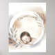 En öm vattenfärg illustration av en sovande bebis inramad av en mjuk rund krans av ömtåliga blad i milda jordnära färger. Designen inkluderar det hjärtliga meddelandet ”Ett litet mirakel är på väg”, vilket gör det till ett perfekt val för graviditetsannonseringar, moderskapstidskrifter eller personliga minnessaker. Anpassa enkelt denna design eller applicera den på en mängd olika Zazzle-produkter med enkla personaliseringsalternativ.