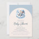 Välkommen den senaste tillskottet till familjen med denna söta akvarell björn inbjudan! Denna charmiga design har en sömnig björn bäddad på ett moln inom en elegant valvformad ram mot en lugnande blå bakgrund. Perfekt för din drömmiga baby shower firande!