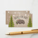 En bokförfrågan för baby shower med en illustration av en björnunge som vilar på en trädgren omgiven av stjärnor på framsidan. Björnen bär en blomsterkrans. Baksidan har en dikt och berg.