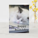 En gullig ragdollkattunge sovar på ett kort för silverbärbar datorhälsning med grattis på födelsedagen i grå färg.