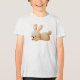 Denna fridfullt sovande kanin-illustration fångar en lugn och mysig stund med mjuka pastelltoner, sköna vattenfärgstrukturer och rundade former. Den avslappnade ställningen och slutna ögonen skapar en lugnande atmosfär, perfekt för sängdagsinspirerade och barnkammarinspirerade designs.