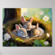 Denna charmiga målning av sovande kaniner ger värme och frid till alla utrymmen. Mjuka, känsliga färger och ömma detaljer fångar de små skogsdjurens fredliga oskuld. Perfekt för barnkammare, barnrum eller någon som älskar fantasifull, mysig vilda djur-konst.