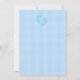 Söt inbjudan med en sovande baby pojke i blå pyjamas. Bakgrunden är blå prickar och blå gingham. Baksidan av inbjudan har blå babystövlar. Lägg till dina festdetaljer med hjälp av vår enkla mall.
