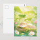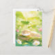 Det här fredliga vykortet visar en lycklig, sovande utter som sover belåtet på en mossig stock. Konsten är utförd i en mjuk, soldränkt akvarellstil med en livfull palett av vårgrönt, citrongult och mjukt vitt. Höga gröna blad och ömtåliga rosa och vita vildblommor inramar scenen, medan skimrande ljusklot skapar en magisk, eterisk atmosfär. Med sin lugna stämning och frodiga trädgårdstexturer är det här vykortet ett perfekt sätt att skicka en hälsning om avkoppling, en försiktig hälsning eller en stänk av solsken till någon speciell.