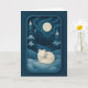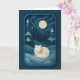 En vit räv sover fridfullt under en lysande fullmåne i denna skiktade papperklipp-illustration. Omgiven av snötäckta kullar, tallar och virvlande ljusspår som påminner om norrsken, frammanar scenen känslomässig stillhet och tyst under. Rävens hoprullade form och den mjuka glöden från natthimlen skapar en drömlik komposition utförd i svala blå och vita nyanser.