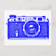 Ett vykort med en högkontrastbild av en sovjetisk vintage finderkamera från 1950-talet/60-talet.