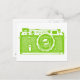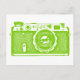 Ett vykort med en högkontrastbild av en sovjetisk vintage finderkamera från 1950-talet/60-talet.