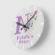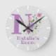 Designen har monogram & namn med blommor på vardera sida i en pastell vattenfärg stil. Exempel namn är Natalie. Ändra namn som önskat för någon med ett namn som börjar med L. Sovrums klocka för barn.