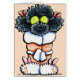 Lustigt teckning av Andie, illustratör och skapare av off-Leash Art™, av ett svart Pudel i persiko-, bunny tofflor och gurkskivor.