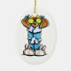 Lustigt teckning av Andie, illustratör och skapare av Off-Leash Art™, av en slät röd blyerd som är klädd i blå skål, tofflor och gurkskivor.