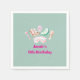 Adorable kids spa party birthday design with relaxing fun colors, spa robe illustration, sleep mask, and cute characters. Perfect for a girls' spa party celebration, this playful design creates excitement and sets a fun, relaxing birthday theme.