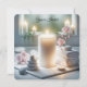Ett område som påminner om ett serene har ett stort ljussken omgivet av mjuka stenar, ömtåliga orkidéer och nyfällda handdukar för en möhippa av spa. All text kan ändras.
