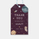 Cute space themed kids birthday thank you gift tag featuring playful astronaut, planet and star illustrations paired with fun, stylish typography on different color backgrounds. You can find more matching items from this collection in our store.