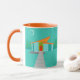 Tecknaden Ringer Mugg i rymdomsåldern är en kom som gäller för älskare som är en retro på drömmen. Den minimalistiska konstdesignen har ett akvasthus med stora, blåa fönster. En gult med sputnik-ljusfixtur från atomen, lutningen, orange tak tänder ytterdörren. Den nedsänkta röda ytterdörren med stjärndoorknopp förskjuts försiktigt av lodräts träplankar av grönt på utsidan av entryvägen. En grått-sten väg skär över den pristina gräsmatta, som verkar turkos i månljuset. Bakom huset pekar en rad lång, tunn, träd mot turkosen himlar och den vita silhuetten från fullt måne. På en kväll som denna syns inga människor, men kitschyhusets invånare är förmodligen i närheten av att titta på nyhetsfilmerna från astronauterna.
