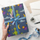Lägg till en oöverträffad beröring till alla presenter med det här mönstrade pappra omslaget. Illustrationer av små utomjordingar i grönten, flygsåser, måne, stjärnor och planeter ställs mot en marin blå bakgrund.