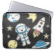 En levande tecknad med astronaut, raketplan, planeter och stjärnor. Perfekt för roligt och skyddande laptop sleeve med ett lekfullt rymdtema.