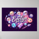 Vackra väggkonst som visar upp en magisk rymdscen med vackra planeter, astronauter och berömda underverk med namn Evelyn. Perfekt för rum, förskolor eller andra rum i älskarna. ✨ Övrigt namn tillgängligt på begäran!