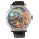 Space Galaxy Cat Riding Tiger på Pizza Armbandsur