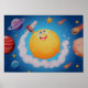 Måne med lycklig ansikte på rymdgalaxtematets bakgrund