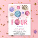 Space Girl Fjärde Birthday Star Party Inbjudningar
