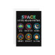 Playful space themed artwork made for curious kids and young students. Cute symbols like UFO, planet, moon, stars, rocket and alien help children explore space science and basic astronomy in a fun and friendly way.
