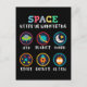 Playful space themed artwork made for curious kids and young students. Cute symbols like UFO, planet, moon, stars, rocket and alien help children explore space science and basic astronomy in a fun and friendly way.