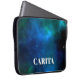 En bärbar anpassningsbar fodral med blå utrymmesbakgrund. Lägg till ditt eget namn i den här anpassningsbarna med hjälp av mallen.