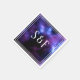 pappra servetter av elegant med anpassade monogram mot en galaxbakgrund.