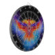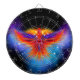 Fiery Phoenix flyger genom rymden på ett blått och lila nebula-moln. Det mousserande klustret av stjärnor som kramar den mytiska fågelns huvud utgör foenix-konstellationen. ♡ Idyllfire
