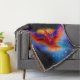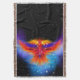 Fiery Phoenix flyger genom rymden på ett blått och lila nebula-moln. Det mousserande klustret av stjärnor som kramar den mytiska fågelns huvud utgör foenix-konstellationen. Lodräts orientering. ♡ Idyllfire