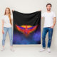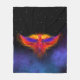 Fiery Phoenix flyger genom rymden på ett blått och lila nebula-moln. Det mousserande klustret av stjärnor som kramar den mytiska fågelns huvud utgör foenix-konstellationen. Lodräts orientering. ♡ Idyllfire