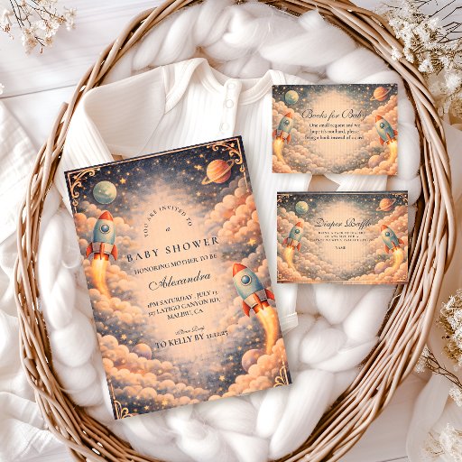 Space Rocket Clouds Baby Shower Inbjudningar