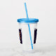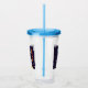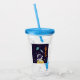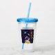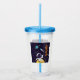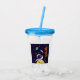 En akryltumör i personligen med mörk blått bakgrund med gultens stjärnor spridda runt. Överst är en illustration av en rymdman som bär en vit astronaut kostym som flyter ovanför måne. Av i avstånd är en planet med ringar och en raketplan som flyger ut i himlar tittar för nya världar att utforska.