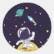 Spaceman Exploring Rymden Runt Klistermärke
