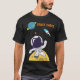 En t-shirt som säger rymdkatedet, med en illustration av en rymdfarare som bär en vit astronaut kostym som flyter ovanför måne. Vavar hej när han utforskar rymden. Av i avstånd är en planet med ringar och en raketfrakt som flyger ut i rymden.