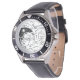 Spaceshöften har post levererad till den. Svart och vit tecknad på en svart ramklocka.