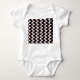 Bandkostymen i baby har ett modernt mönster i mitten av århundradet med vita ovaler med röda cirklar som är förbundna med vitt linjer på svart fält. Vill du ha annorlunda färg? Säg det.
