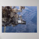Astronauts Joseph R. Tanner (bildcentrum) och Heidemarie M. Stefanyshyn-Piper (delvis obscured, lower lämnat), båda STS-115 uppdrag specialister, deltar i de första tre sessionerna av extravekulär verksamhet (EVA) när byggandet återupptas på Internationell Space Station.