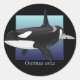 Orcinusorcaen, späckhuggaren, är den största medlemmen av delfinfamiljen och identifieras lätt av dess djärva svartvita teckning. Dessa orcaklistermärkear är fullständigt anpassadet! Original- konst (c) Lydia "PrairieGhost" Jacobs 2009