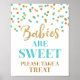 Candy pub spädbarn är söt, ta ett behandlingstecken poster för babydusch i ljusblått och guld konetti mönster med handskriven stil-skrift.