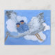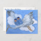 Det här vackra vykortet har ett vajrande drag att flyga på tvillingplats pojke i kajetter och blå filtar som kör en stork. Den ursprungliga beställda oljemålningen är av konstnären och Francophile, Susan Payne-Trutna. Det här vykortet kan vara personlig som ett födelsemeddelande eller som ett tackkort eller kanske en inbjudan till babydusch. Det finns en matchande porto frimärke.