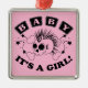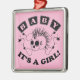 Söt rosa dödskalle med Mohawk och BABY - DET ÄR EN FLICKA! text.