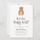 Den här babyduschinbjudan är dekorerad med en söt, handmålad nalle. Den bruna texten säger: "Vi kan vänta tidigt!" Den här inbjudan är underbar för en babydusch i gender neutralt. Ursprunglig vattenfärg © Michele Davies.
