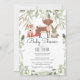 Med söt hjort, räv, kanin och löv i skogen, kan den här babyduschen i elegant gender neutralt, sprinkle eller par duschinbjudan vara personlig med din speciella händelseinformation. De omvända egenskaperna hos löv på skogsmark är spridda på en grönts bakgrund. Designad av Thisisnotme©
