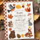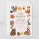 Den här söta, gender-neutralt-babyduschinbjudan innehåller trädsdjur, t.ex. ekorre, räv, björn, hjort, rån och boj, tillsammans med höst löv, svamp, pinsekon och horn. Den omvända sidan har en höstorange i mönster. Anpassa efter dina behov. Du hittar fler matchande produkter i min butik.