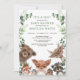 Fira din lilla annons med den här vismska skogen, den där inbjudan till babydusch. Utformningen har en grupp goda skogsvänner och spolar vattenfärgsgröna grejer.