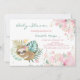 Inbjudan till babydusch med vattenfärgssovande slöjor och blommor.